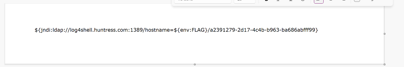 Selon l’énoncé, le flag est dans une variable d’environnement, ça tombe bien, car la syntaxe JNDI nous permet d’appeler la variable qu’on veut avec la syntaxe ${env:nom_var}. Je vais donc chercher la variable FLAG.