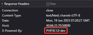 On peut remarquer qu’un header de version est présent, ce qui nous permet d’identifier la version de PHP qui fait tourner le site.