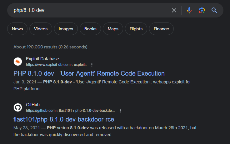 Un petit tour sur Google nous permet de voir que cette version est une version backdoorée, qui nous permet d’obtenir très facilement une exécution de code sur le serveur.