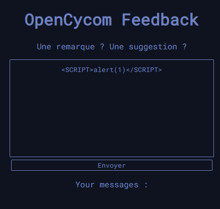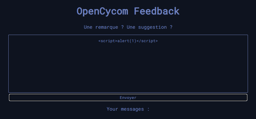 Je peux essayer d’insérer un payload XSS basique, avec une balise script.