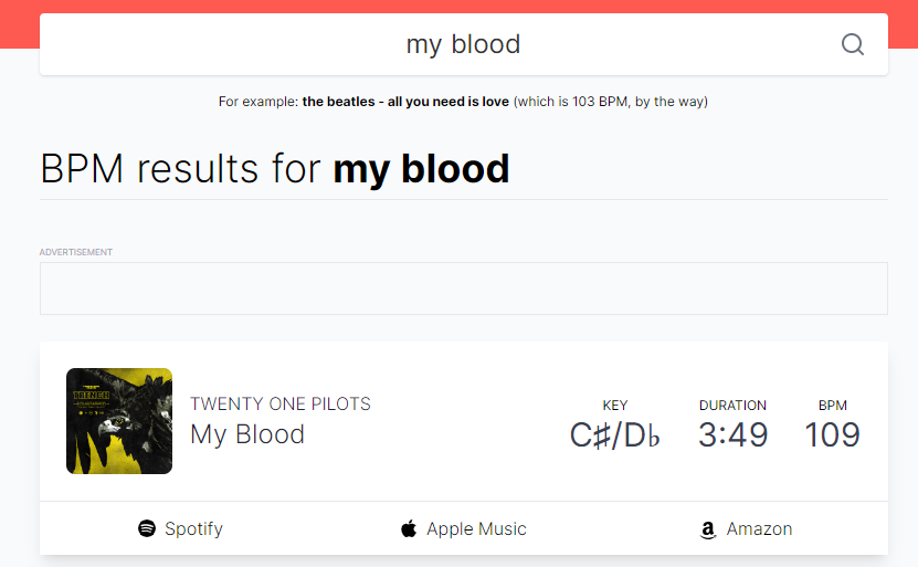 En utilisant des outils en ligne exploitatant des bases de données publiques, il est possible d’obtenir facilement le BPM de toutes les chansons de la playlist.