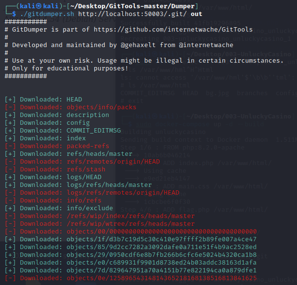 On découvre un répertoire git exposé. Bonne nouvelle, on peut donc utiliser GitTools pour essayer de récupérer du code source.