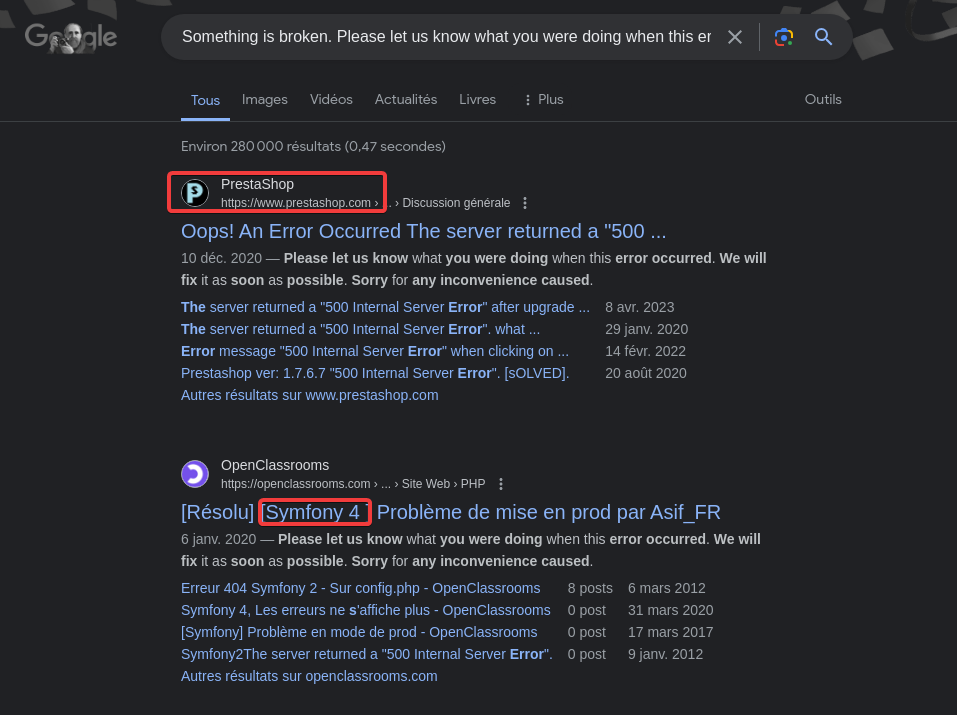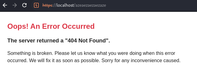 En générant une erreur 404, j’obtiens une erreur stylysée, et en faisant une recherche sur son texte, j’en conclus qu’il s’agit d’une erreur du framework Symfony.