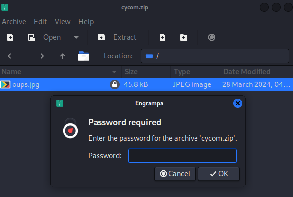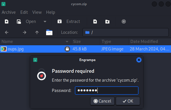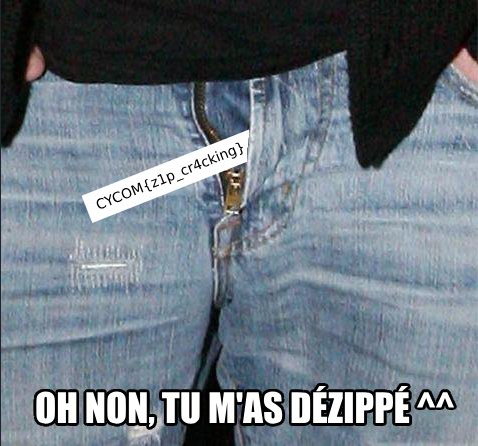 Allez, un zip chiffré pour se mettre en jambe. A la vue du titre et de l’énoncé, je pense qu’on peut commencer par une attaque dictionnaire classique.