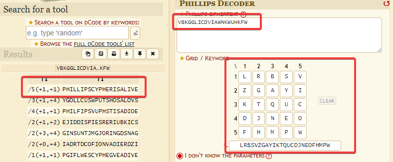 Le texte est encodé à l’aide du code Philips. 25 lettres dans le texte sont en majuscule, il suffit de les collecter dans l’ordre et de remplir la matrice 5x5 par ces lettres : LRBSVZGASYIKTQUCDJNEOFHGMPW