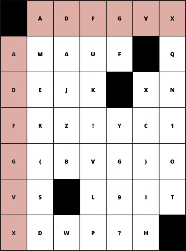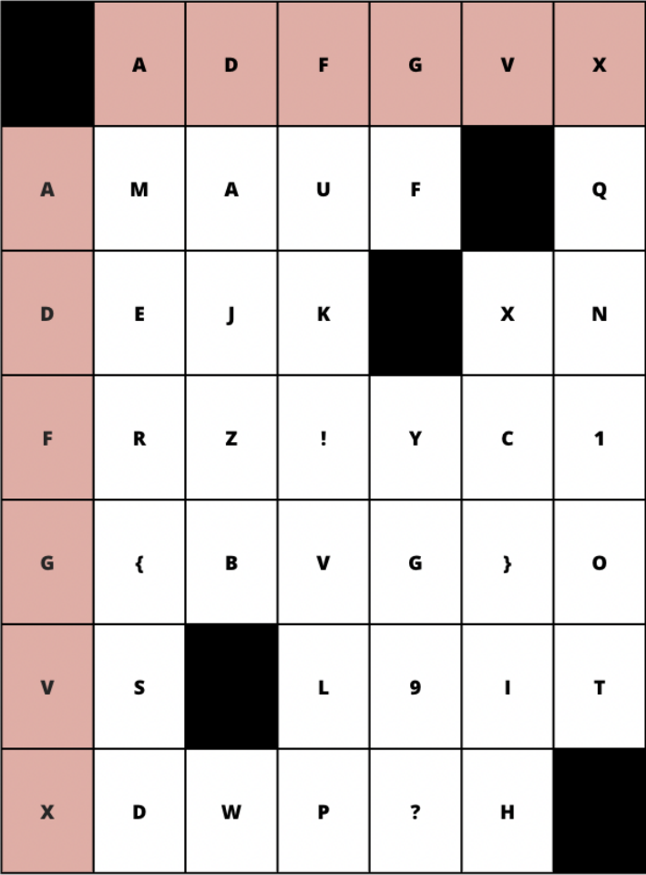 Avec une rapide recherche internet on retrouve l’explication du chiffrement ADFGVX.