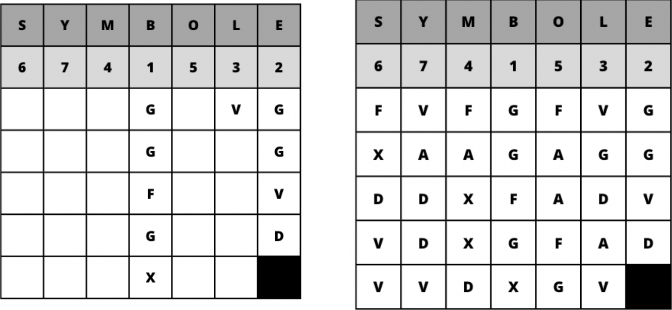 On lit ensuite le tableau ligne par ligne pour retrouver l’antigramme : FV FG FV GX AA GA GG DD XF AD VV DX GF AD VV DX GV.